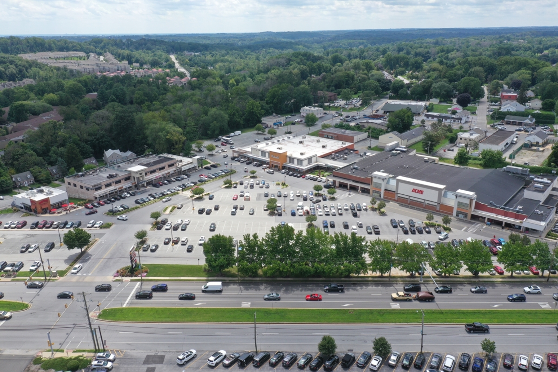 The shopping center features a mix of well-known retailers, including ACME Markets, Michael's, and Hallmark, as well as specialty stores like Hiramasa Japanese Restaurant and United Vision Pet Partners. The center also offers a variety of dining options, such as Carmine's Pizza and The Ale House, making it a one-stop destination for both shopping and dining.